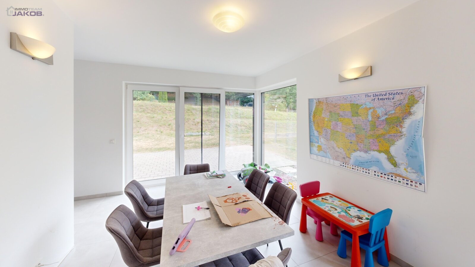 In direkter Feldrandlage befindet sich dieses ca. 2015 freistehend erbaute moderne Einfamilienhaus auf einem ca. 585 m² großen Grundstück. Die Wohnfläche von ca. 189 m² verteilt sich über 2 Etagen.
